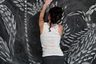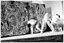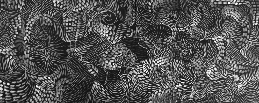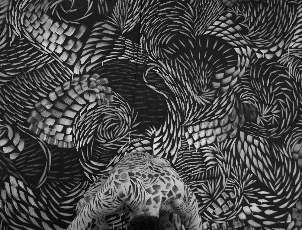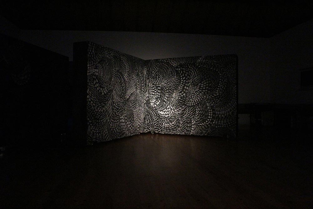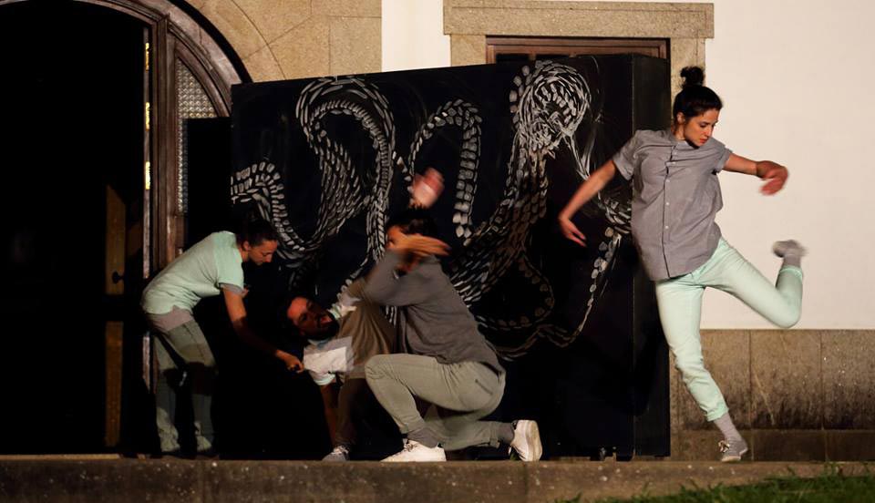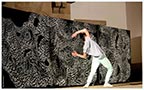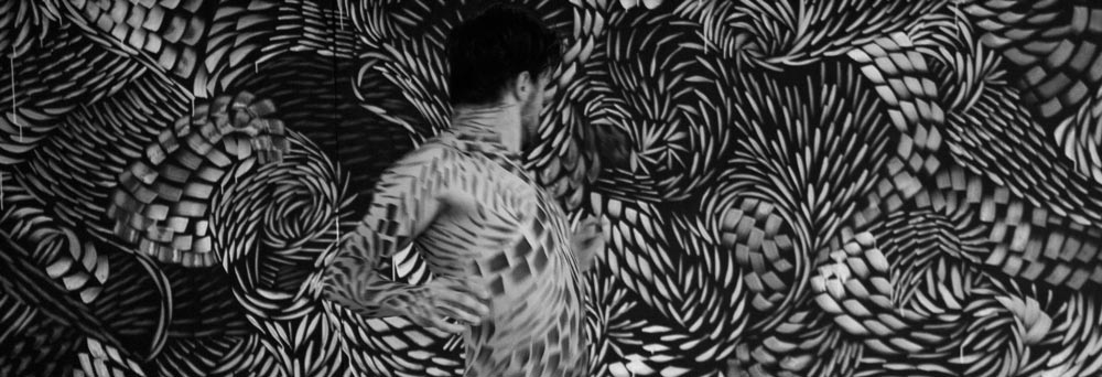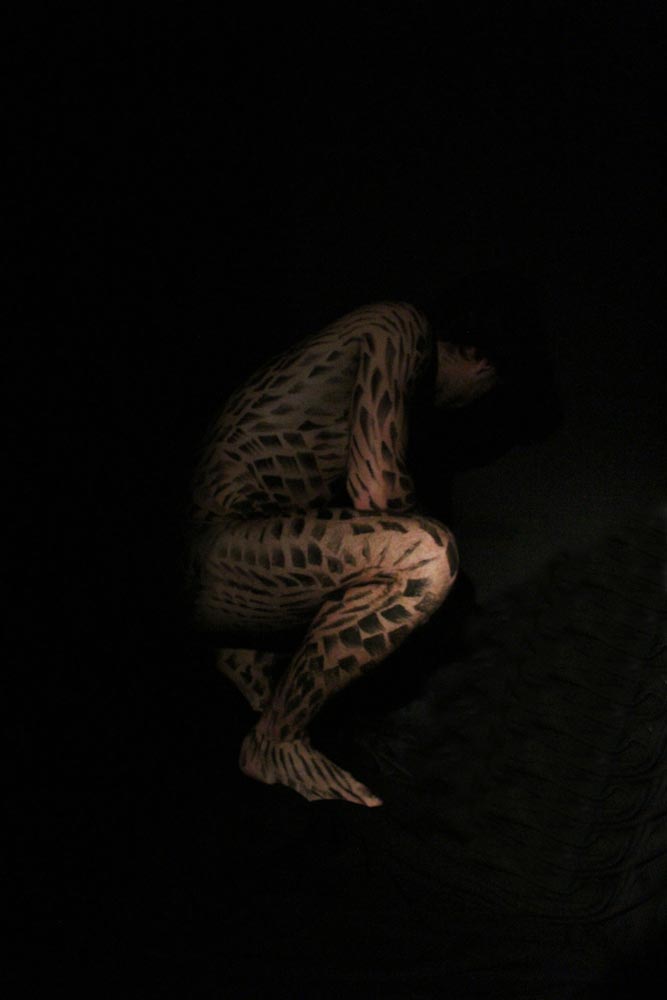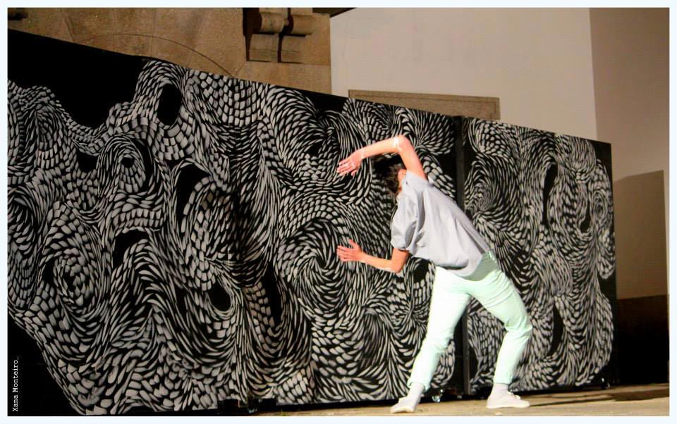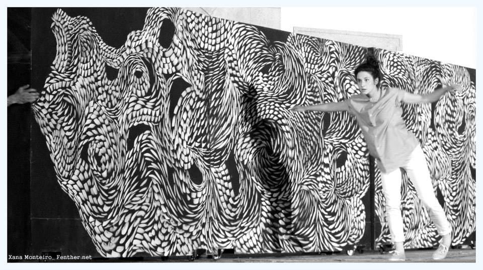 "Land(e)scape" is a meta-narrative performance created from the reciprocity between visual arts, dance and sound art. It concerns a moving landscape whose constituent elements are constantly fluctuating. Frozen in mid-travel, movements are composed, line fluxes are choreographed and atmospheres are pursued.