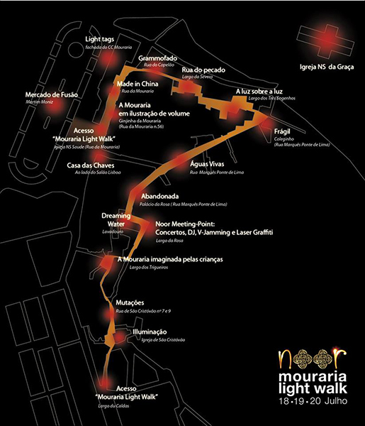 Marta Angelozzi and Edgar de Oliveirar were invited to participate to the Noor Mouraria Light walk by the Ebano Collective