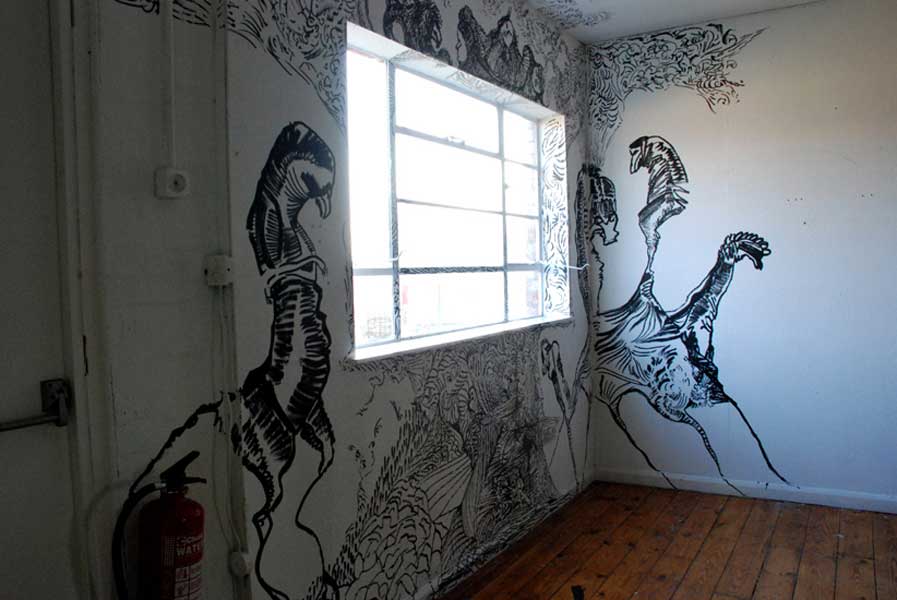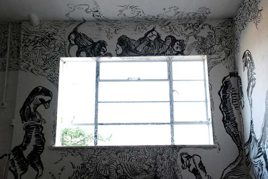 This drawing was made in collaboration with Maia Sambonet. It was a backdrop for a theatrical performance that happened at the 491 Gallery by a group called Foolish People.